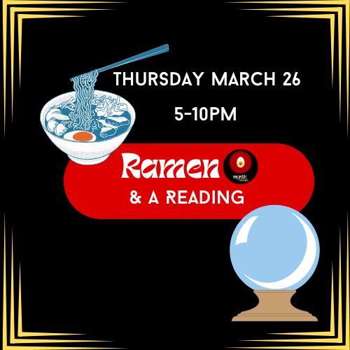 Slurp some noodles and get some insights into your burning questions. Shanel is a powerful intuitive, and we can’t wait for you to sit with her!